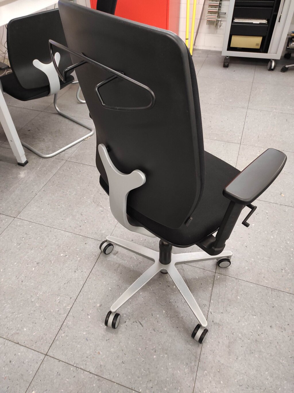 Bürostühl des renomierten deutschen Herstellers Sedus.. Individuell verstellbar nach den ergonomischen Bedürfnissen: z. B. Lumbalverstellung in Höhe und Tiefe, Armauflagen in Höhe, Tiefe und Seitenwinkel. Obermaterial aus Schurwolle. Mit Kleiderbügel auf der Rückseite der Lehne.
